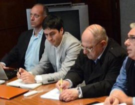 El intendente -en la foto junto a la flamante incorporación del PRO porteño, Agustín Cinto, durante una reunión con las enviadas del "tablero de gestión"-le puso un 8 a su gestión.