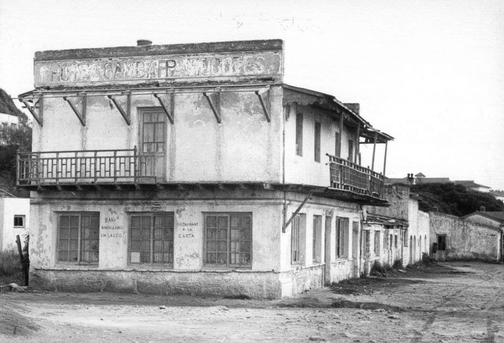 Antiguas fotos nos permiten saber que hacia la década del ’30, quizás en forma paralela con las actividades de la cantera en su etapa final, el sector comenzó a ser explotado turísticamente con un hotel y confitería que estaba ubicado sobre la playa y que se llamó alternativamente “Gamba” y “Punta Mogotes”. Fue uno de los establecimientos precursores del sector y tuvo una escenografía singular en medio de un paisaje agreste, junto a la alta chimenea y las dependencias anexas de la calera.
