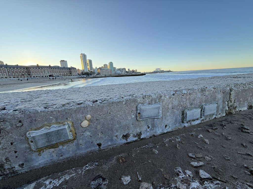 Son las 5 de la tarde de un sábado y una familia detiene su paseo por la escollera de la Playa Bristol. Leen, en silencio respetuoso, las inscripciones de las placas que aún no han sido erosionadas por el tiempo y el salitre. Esta postal se repite en los espigones aledaños.