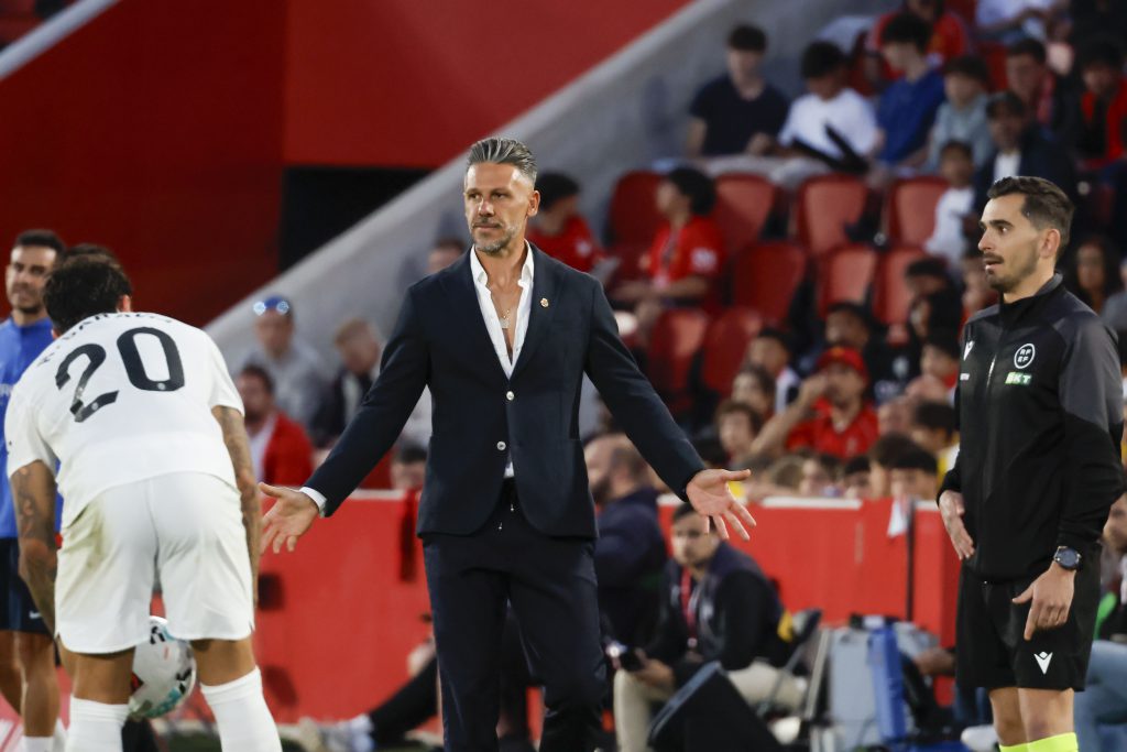 Martín Demichelis, durante el partido de la jornada 33 de LaLiga EA Sports entre Real Mallorca y Valencia, en el estadio de Son Moix. Foto: EFE | Cati Cladera.