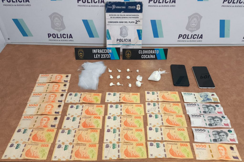 Al realizarles un cacheo, los policías encontraron entre las pertenencias del más joven 13 envoltorios de cocaína, 77 bolsas ziploc, un celular y 29.250 pesos; mientras que en la riñonera del otro un teléfono y 30.000 pesos.