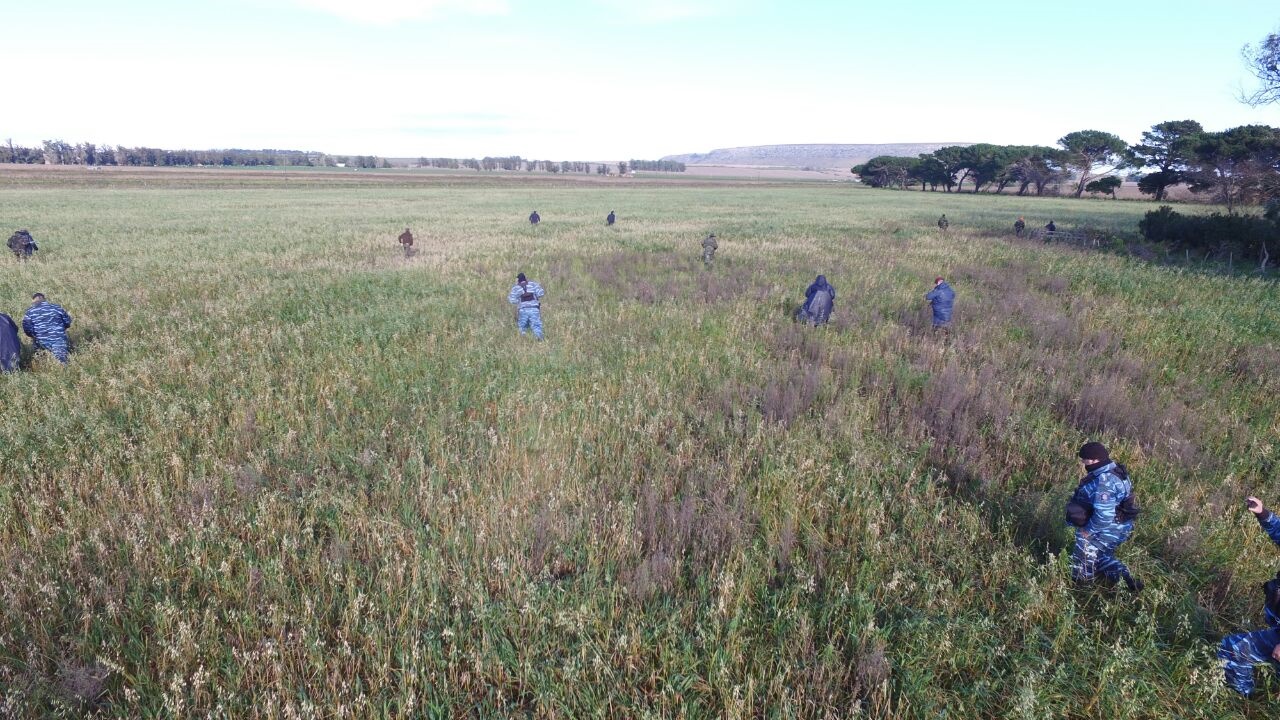 La Policía de Balcarce rastrilla un campo para intentar ubicarlo. Apareció la ropa y el cuchillo que usaba pero no hay rastro del peón.