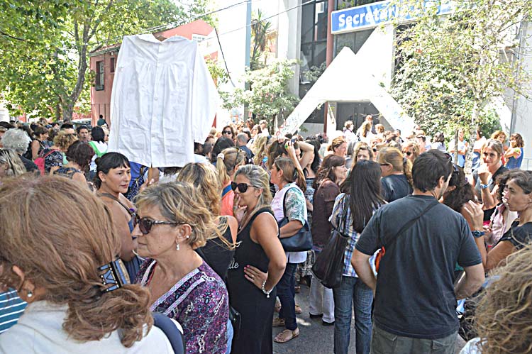 En compañía de dirigentes del Sindicato de Trabajadores Municipales (STM), el Sindicato Unificado de Trabajadores de la Educación de Buenos Aires (Suteba), el Sindicato Argentino de Docentes Privados (Sadop) y la Agremiación Docente Universitaria Marplatense (Adum), entre otros, profesores y docentes se concentraron al mediodía frente a la Secretaría ubicada en Catamarca al 2900, para rechazar también el papel de su titular, Ana María Crovetto y reclamar que “dé un paso al costado”.