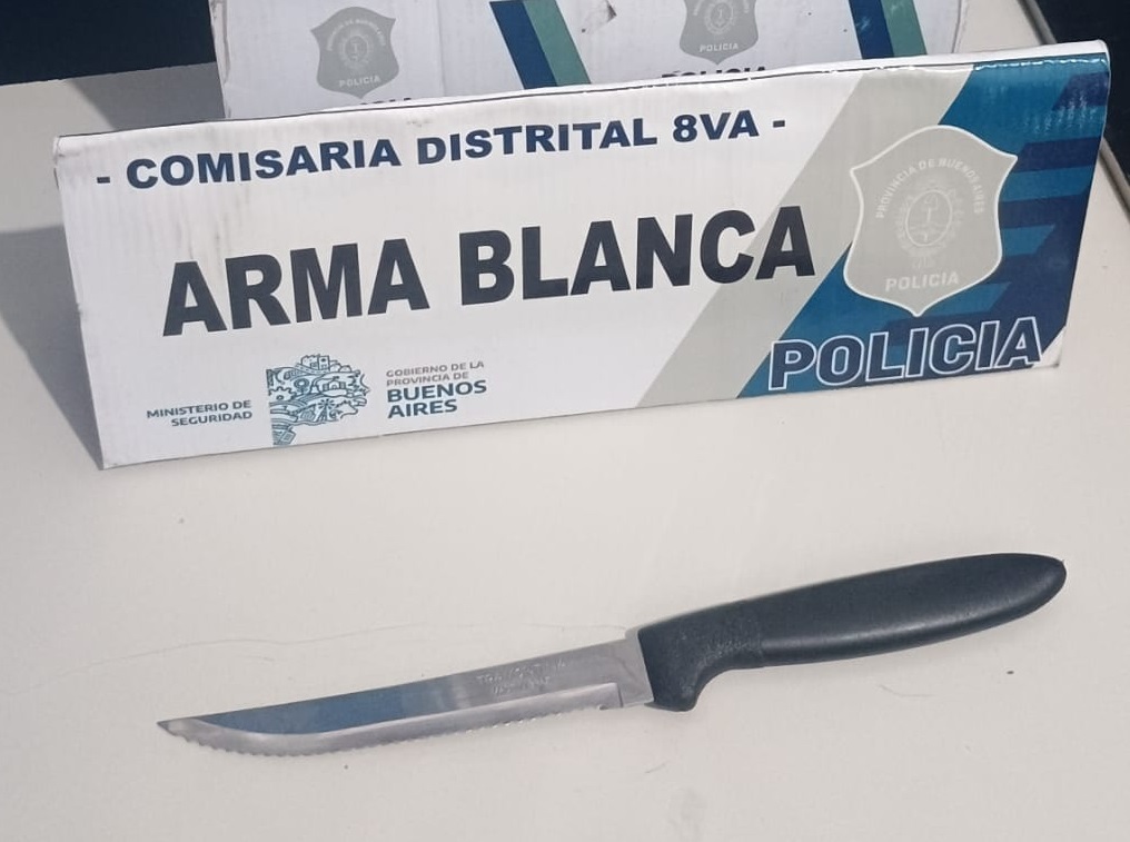 Al arribar al lugar, los policías identificaron a los dos sujetos, quienes en ese momento arrojaron al suelo un cuchillo de cocina con hoja tipo serrucho y mango negro.