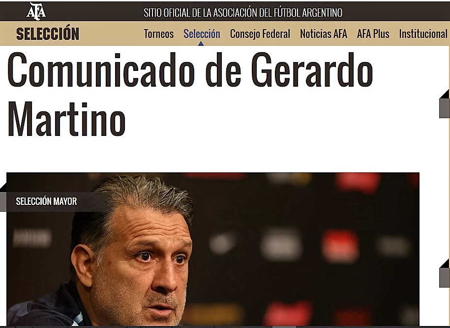 La AFA oficializó la renuncia de Martino con un comunicado que el propio entrenador escribió y que puede verse en la página oficial de la entidad que rige los destinos del fútbol argentino.