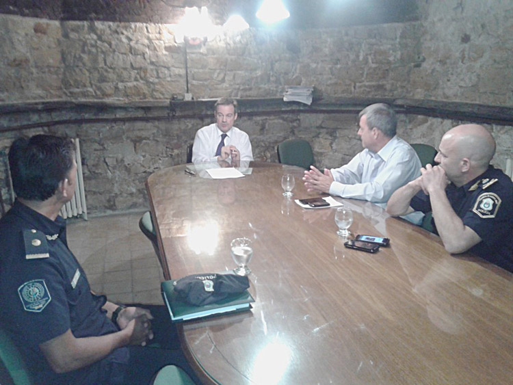 l encuentro, del que participaron el jefe de Operaciones de la Departamental, Fabio Astor, y el jefe de la Policía Local, Fernando Telpuk, se originó después de que trascendiera que policías bonaerenses realizarían un reclamo durante dos horas por mejoras salariales.