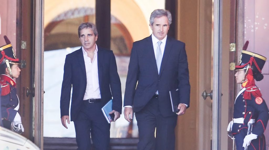 El ministro de Economía, Luis Caputo, y el secretario de Finanzas, Pablo Quirno, saliendo de Casa Rosada.