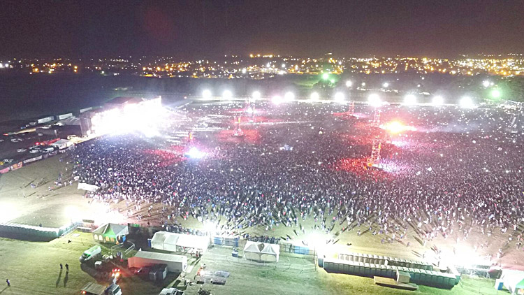 Sobrevolando a la multitud podían verse drones, algunos lanzados por la propia organización y otros por los fans, que fotografiaban la increíble geografía del lugar y el efecto constelación, con miles de pantallas de celulares encendidas. Muchas de esas fotos panorámicas hoy circulan por las redes sociales.