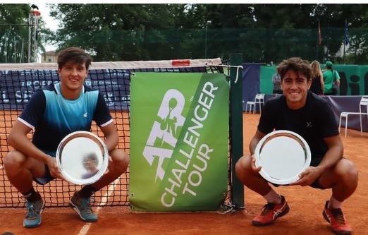 Luciano Darderi y Francisco Comesaña cuando se consagraron campeones en dobles en el Challenger de Vicenza, Italia, en 2022.