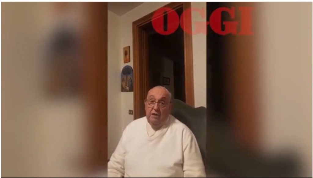 La grabación, de un minuto de duración, se realizó el 8 de enero dentro de una iniciativa de diálogo entre jóvenes y adultos, lo muestra en su residencia de la Casa Santa Marta ataviado con un jersey blanco de cuello de pico.