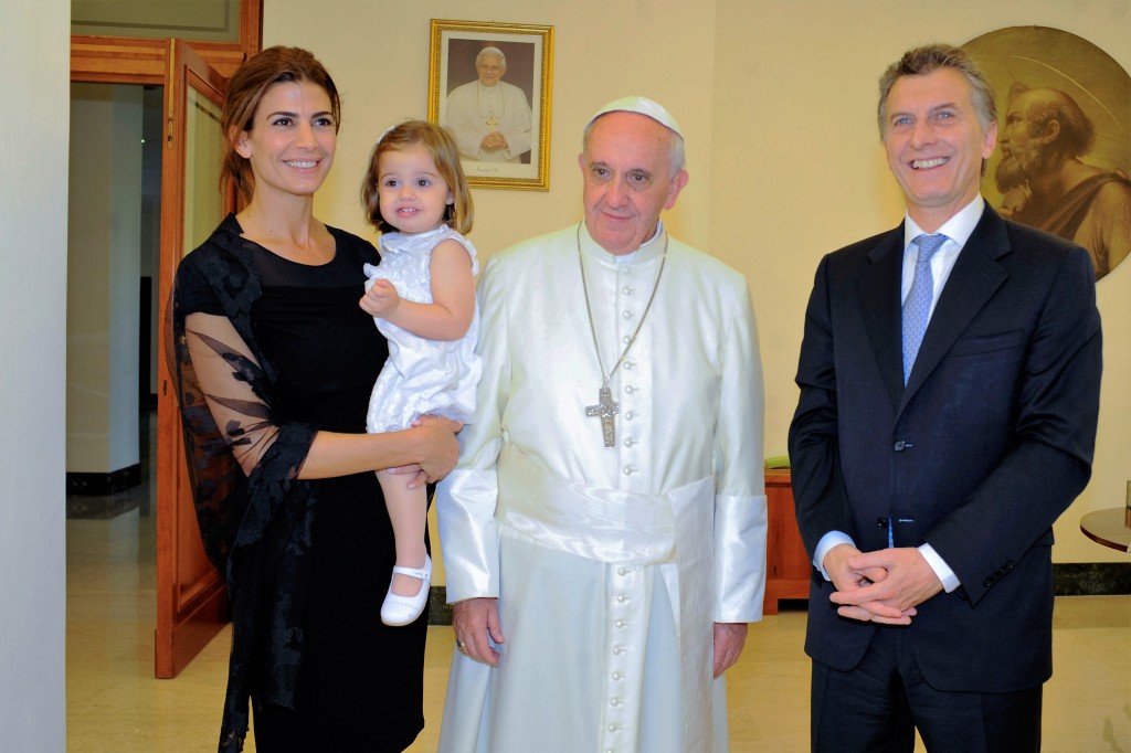 Francisco junto a Macri, Juliana Awada y la hija del matrimonio presidencial, Antonia. Foto: Télam.