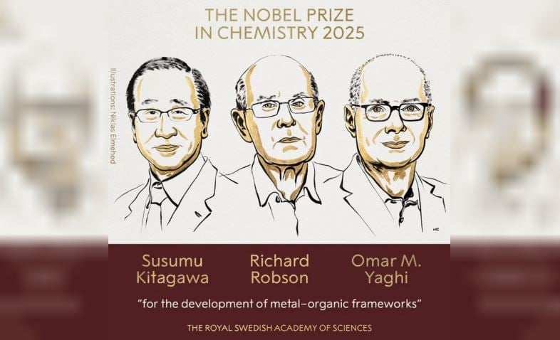 La Real Academia de Ciencias de Suecia otorgó este miércoles el Premio Nobel de Química 2025 al japonés Susumu Kitagawa, el británico Richard Robson y el jordano Omar Yaghi “por el desarrollo de estructuras metalorgánicas”, una nueva arquitectura molecular.