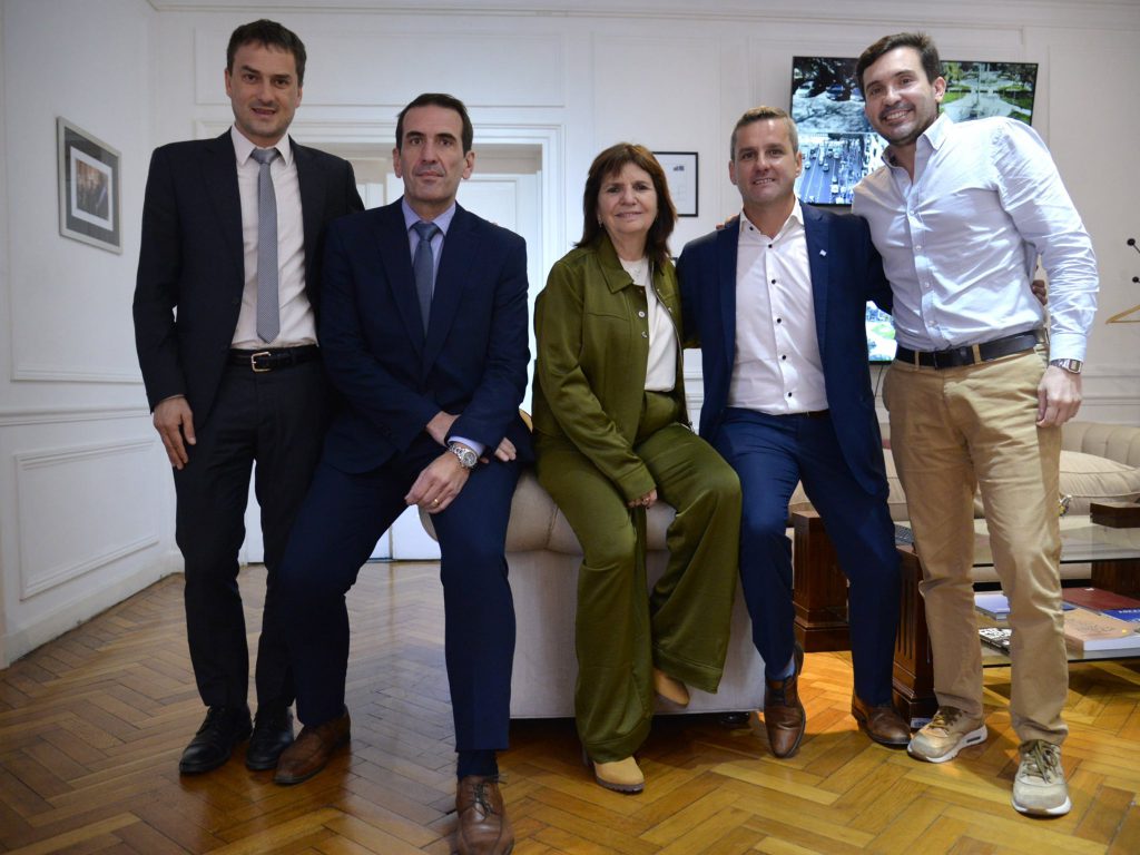 Mariano Campero, Pablo Cerci, Martín Arjol y Francisco Monti, integrantes de la Liga del Interior, junto a la ministra Patricia Bullrich.