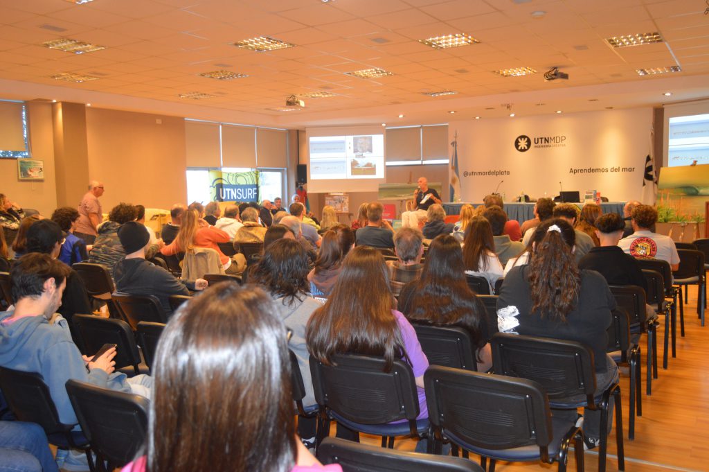 El Aula Magna de la Universidad Tecnológica Nacional (UTN) de Mar del Plata lució colmada de público, que siguió respetuosamente las exposiciones de los disertantes, permaneció hasta el final y luego participó en diferentes sorteos.