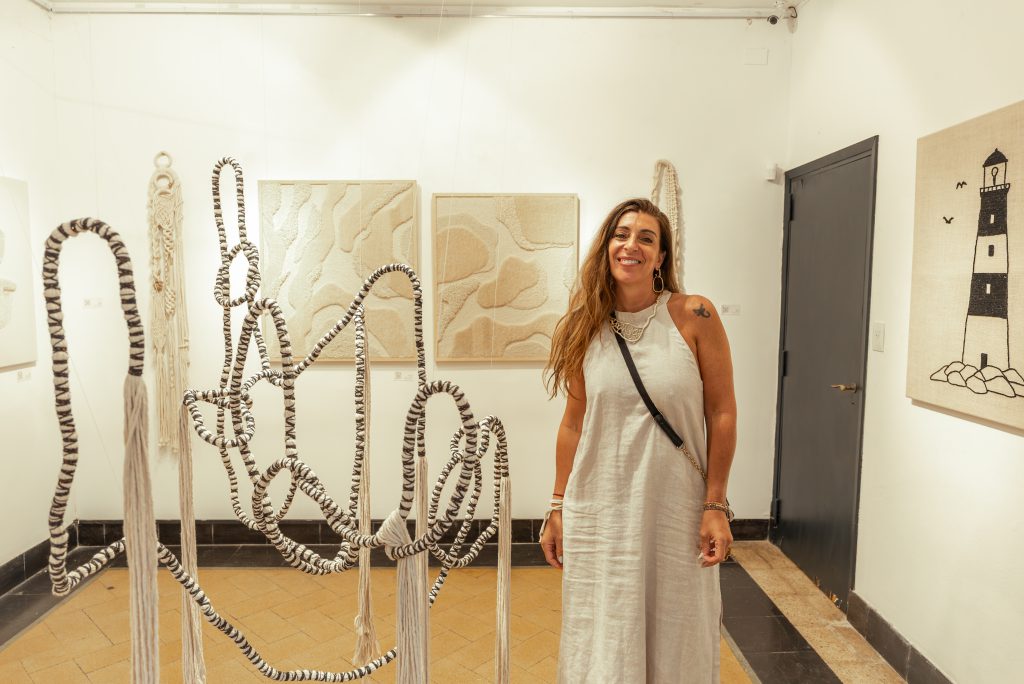 La muestra incluye encordados de papel kraft, combinaciones de materiales, tramas orgánicas y estructuradas, trabajos de tufting en relieve, bordado y objetos textiles tridimensionales. Todas las obras fueron realizadas especialmente para esta exposición de verano 2026 y forman parte del núcleo de la investigación artística de Martínez.