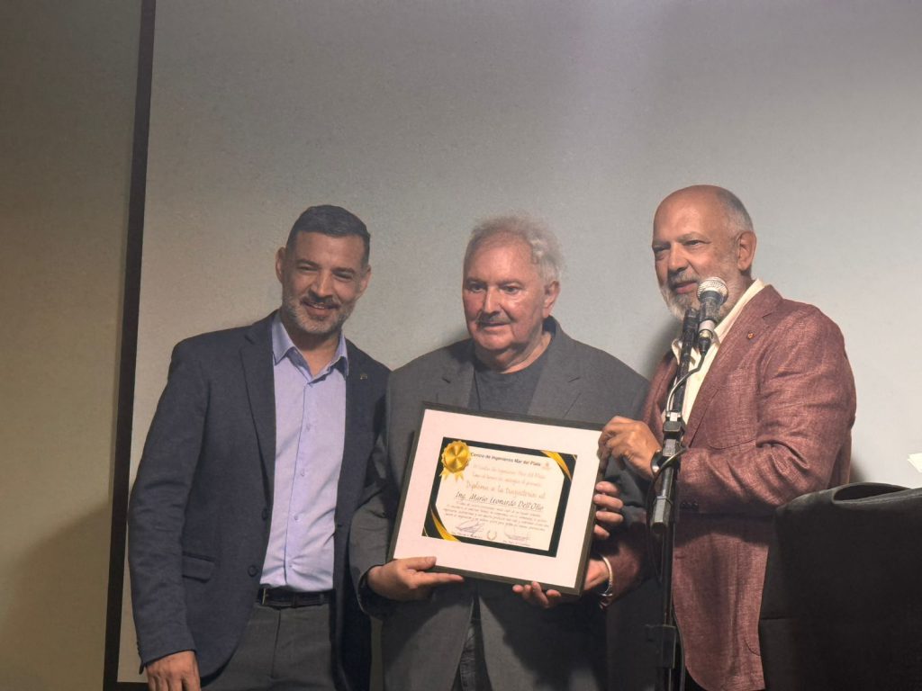 Se desarrolló un emotivo acto homenaje al ingeniero Mario Dell Olio, en reconocimiento a sus 50 años de trayectoria profesional, durante los cuales se consolidó como una de las figuras más influyentes de la ingeniería y de la gestión de los servicios públicos de Mar del Plata y la región.