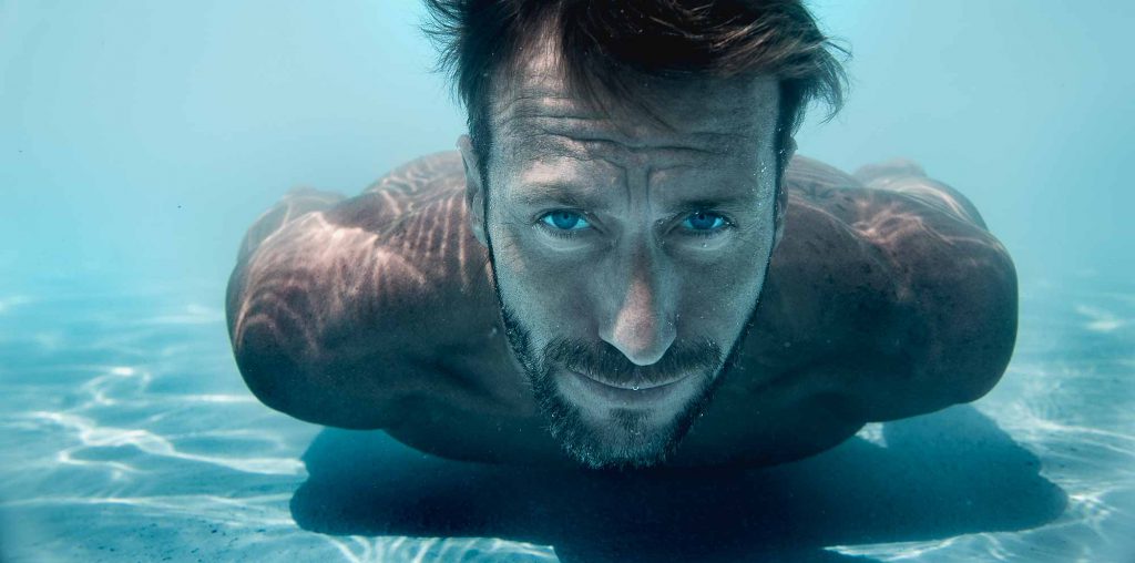 José Meolans bajo el agua, una de las fotografías de Sánchez.