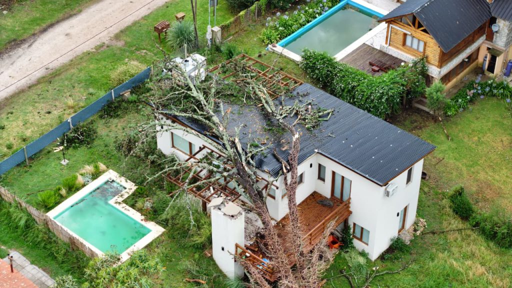 Hubo árboles caídos sobre casas, voladuras de techos y postes de luz caídos. Continúa el trabajo del municipio y de Bomberos en la zona.