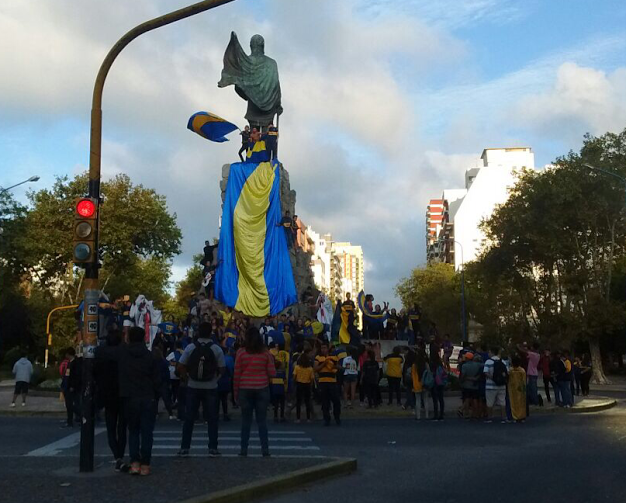 Los hinchas de Boca festejaron el cumpleaños del club de la Ribera con un banderazo en el monumento al general San Martín.