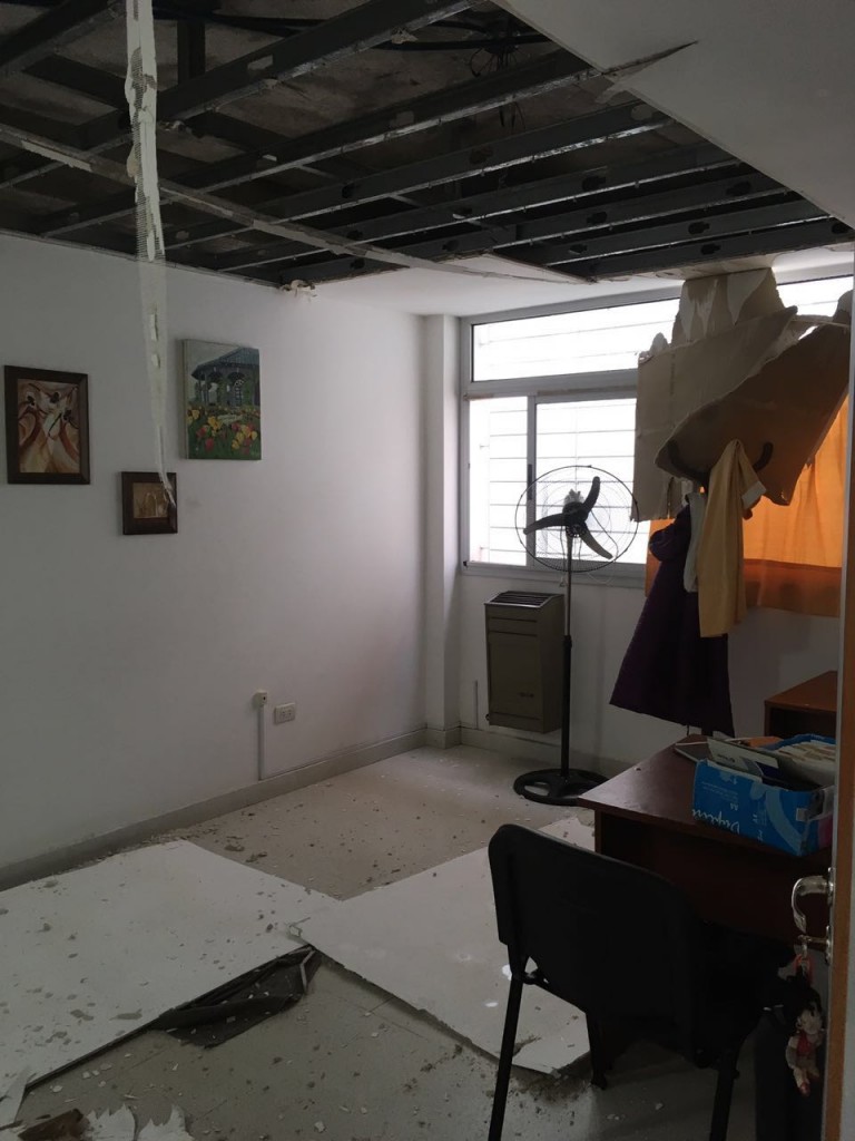 Aparentemente, el techo cayó como consecuencia de algunas filtraciones ocurridas durante la tormenta de esta semana.