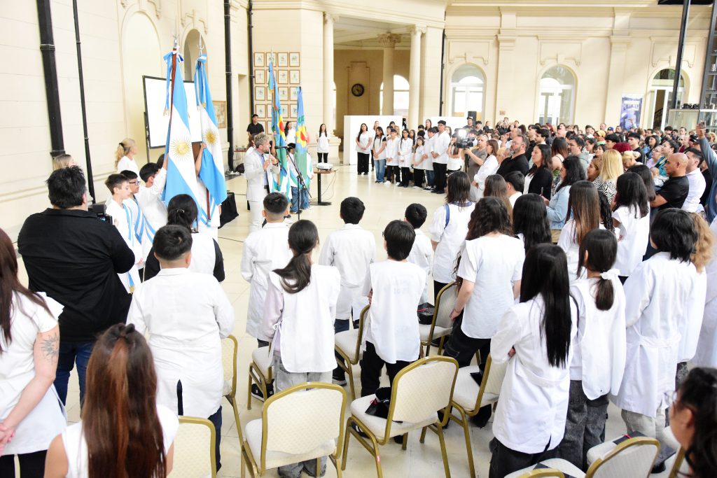 Luciendo sus guardapolvos blancos y un birrete alegórico, ingresaron a la nave histórica y saludados por familiares, amigos y docentes de la institución, se acomodaron para proceder con la formalidad del acto.