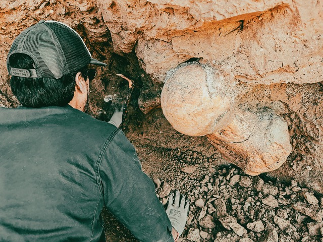 Todo sucedió el sábado pasado, cuando Mario Cianciola y Lumar Ávila González vieron en la base del acantilado una esfera de hueso anaranjado (del tamaño de una pelota de fútbol) y rápidamente se pusieron en contacto con personal del museo para denunciar el hallazgo.