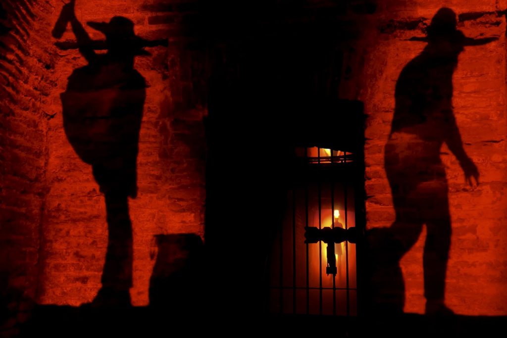 Durante este paseo subterráneo, entre la penumbra y las barricas, una serie de tétricas y demoníacas proyecciones van guiando al espectador hasta una desgastada puerta de barrotes de metal donde -ver para creer- entre fuego y ruidos del averno, aparece el mismísimo diablo, protector de la bodega y de todo lo que contiene.