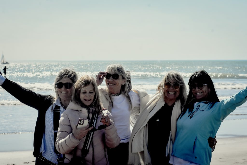 Un grupo de amigas, ayer, disfrutando de la costa.