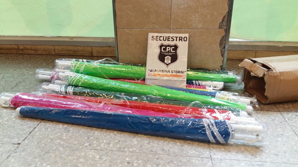 La maniobra fue observada por efectivos de dicho cuerpo policial que en unos segundos interceptó al hombre y lo aprehendió. Tras secuestrarle las diez sombrillas lo subió al patrullero y lo trasladó hasta la comisaría primera, con jurisdicción en el lugar de los hechos.