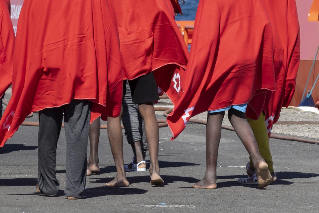 Hombres de origen subsahariano son trasladados al puerto de Arguineguín (Gran Canaria) tras ser localizados a bordo de un cayuco a unos diez kilómetros de la costa. Foto: EFE | Quique Curbelo.