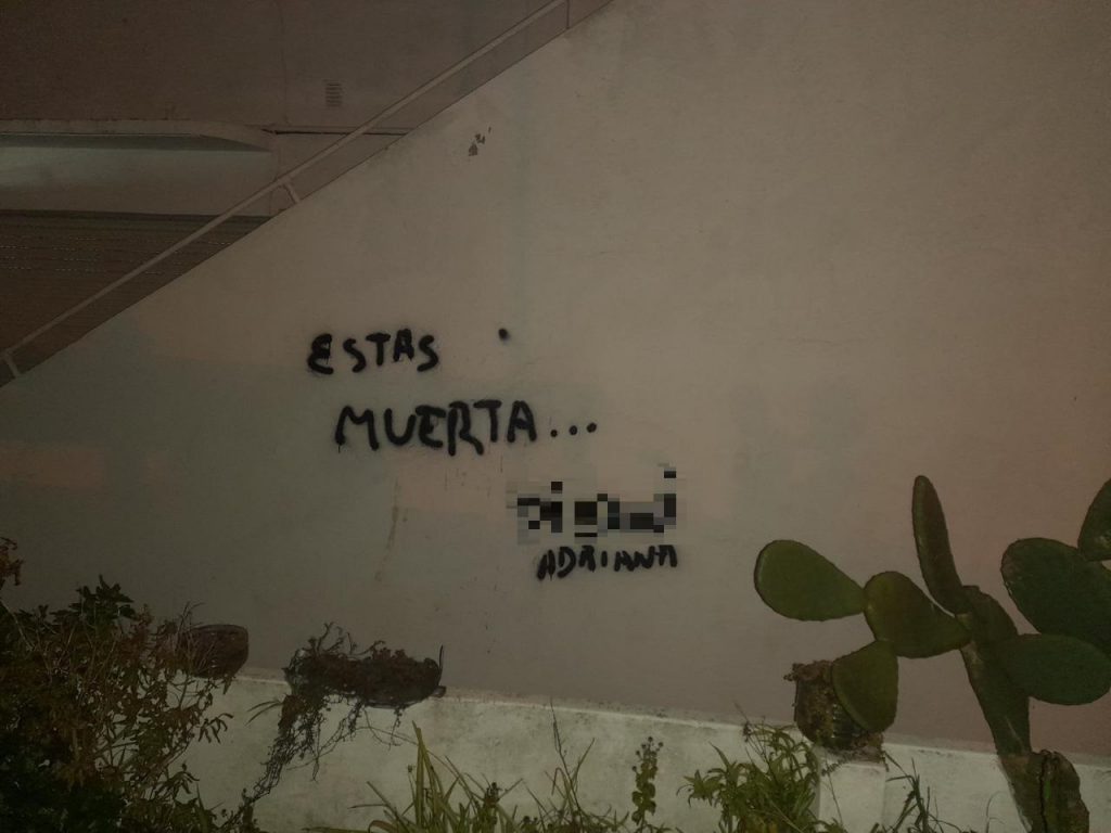 “Estás muerta P. Adriana“. La pintada en la casa del barrio Punta Mogotes apareció el jueves a la noche, luego de que dispararan contra la vivienda en dos oportunidades. No es la primera vez que algo así sucede: a fines de junio le habían prendido fuego el auto que estaba sobre la trotadora y otra vez el mismo escrache: “Estás muerta P. Adriana“.
