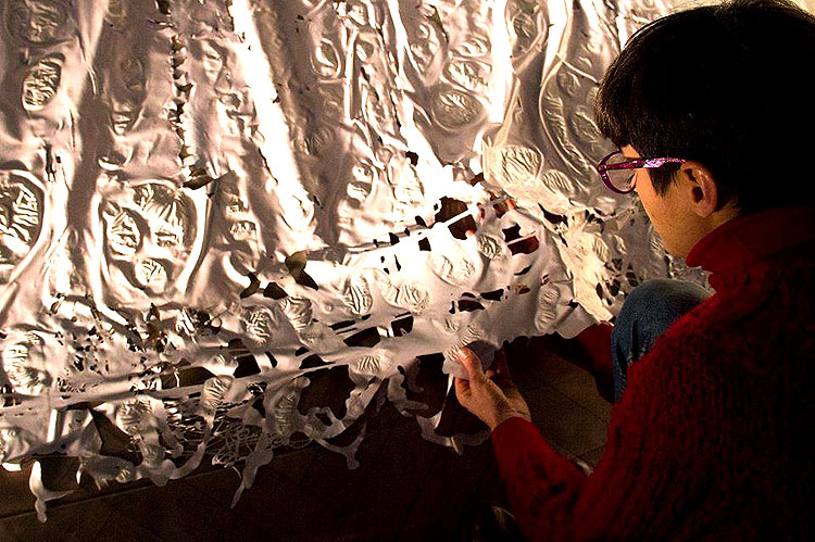 “La pintura está doblada, es tridimensional, orgánica, suave al tacto y con cúmulos secos solo superficialmente, por dentro la pintura está fresca y lo estará por meses, años tal vez”, agregó. Y reflexionó sobre los atributos de la pintura. “La pintura está en todo, en cada superficie, todo está pintado, en este caso se presenta en su estado de reposo, un acercamiento a la pintura en sí, a su carácter”, dijo.