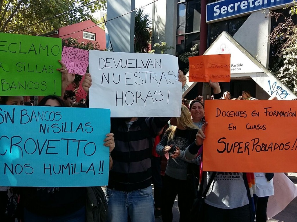 Se manifiestan frente a la dependencia para reclamar por la falta de aulas y de mobiliario. Exigen que la secretaria del área, Ana María Crovetto, se haga cargo de resolver el problema.