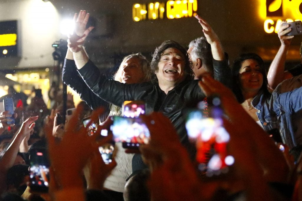 Milei, eufórico en Guemes. Foto: Mauricio Arduiin (LA CAPITAL).
