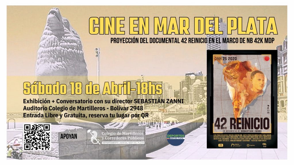Para este sábado, desde las 18, está programada la exhibición del documental “42 Reinicio” y posterior conversatorio con su director, Sebastián Zanni.