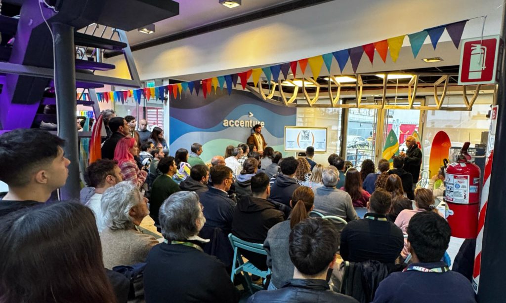 La jornada comenzó con una inspiradora charla magistral a cargo de Alejandro Piscitelli, reconocido filósofo y especialista en filosofía de la tecnología e inteligencia artificial, quien presentó “De Gutenberg a los Transformers: el desafío del Paradigma Centauro” en las oficinas de la firma Accenture.