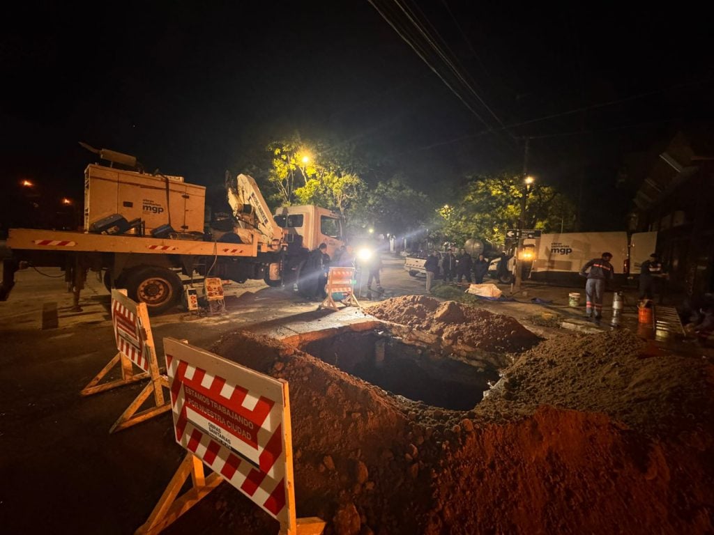 Una cuadrilla integrada por 12 trabajadores de la empresa municipal trabajó durante la jornada en el lugar y finalmente, a la medianoche se logró finalizar las tareas lo que permitió que se empiece a normalizar el servicio.