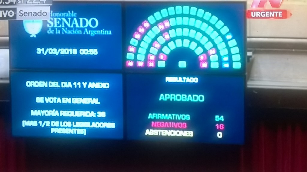 El proyecto contó con el apoyo de 54 senadores y el rechazo de otros 16 en la votación en general, mientras que fueron rechazados los cambios propuestos por un sector de la oposición.