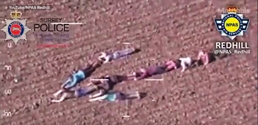 La policía del condado de Surrey (Gran Bretaña) dio a conocer un video en el que un grupo de niños forman una flecha humana para apuntar la dirección en la que habían huido dos ladrones y facilitar la tarea al helicóptero de la fuerza de seguridad que los estaba buscando.