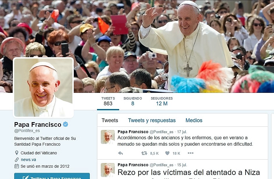 Para el 12 de abril del año pasado, según los datos brindados por el Vaticano, la cuenta oficial del Papa trepó a los 20 millones de seguidores en todos sus idiomas.