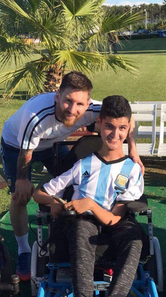 Franco Greco, el marplatense de la Selección Argentina, con el astro Lionel Messi, quien le donó la silla.