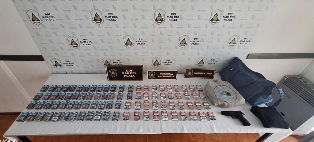 Se trata de Jorge Ernesto Granado, quien quedó aprehendido tras un operativo realizado por personal de la Delegación Departamental de Investigaciones (DDI) local, bajo las órdenes del fiscal Fernando Berlingeri. En su poder, los efectivos hallaron 88 paquetes de cigarrillos de las marcas Marlboro y Chesterfield presuntamente sustraídos de los comercios, ropa y la réplica de una pistola calibre 9 milímetros con la que se supone que amedrentaba a sus víctimas.