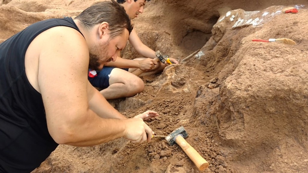 El paleontólogo Matías Taglioretti dijo a Télam que “ya son tres veranos consecutivos que estamos trabajando en la recuperación de este perezoso terrestre gigante que, posiblemente, constituya una nueva especie para la ciencia”.