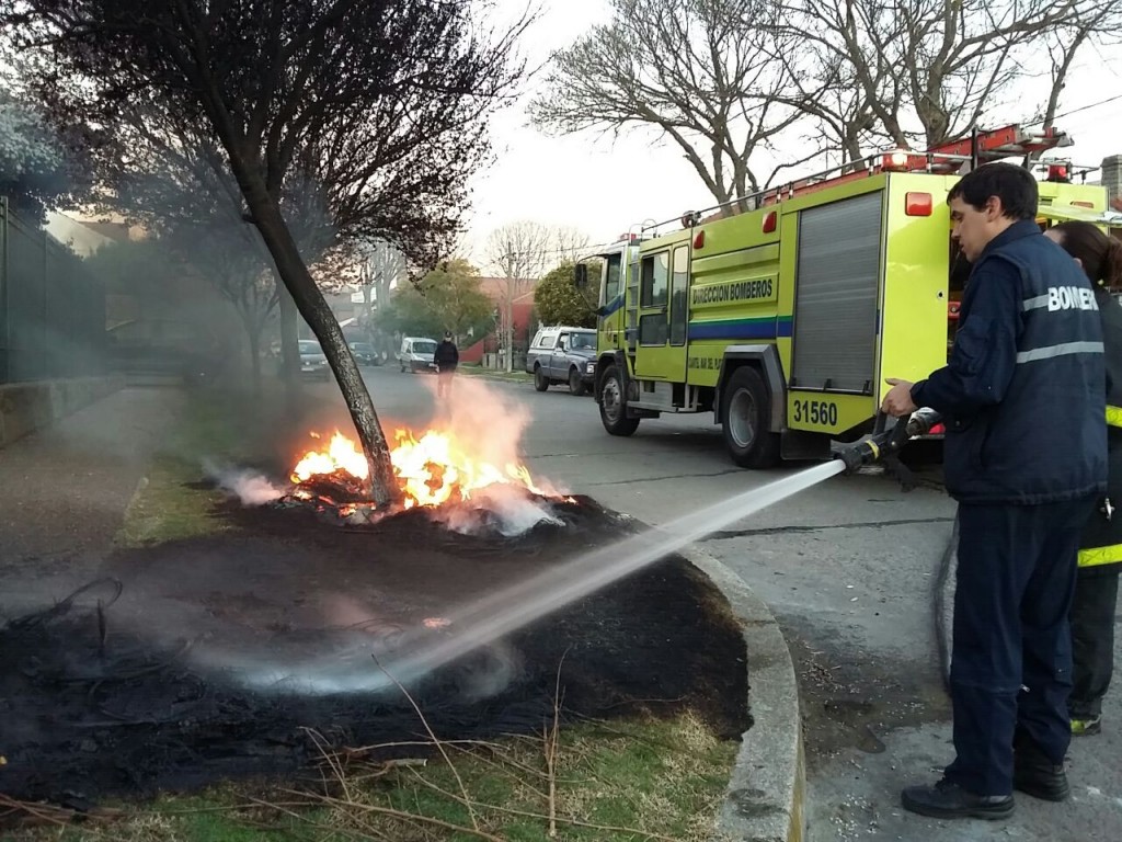Un grupo de personas que realizaban una protesta por conflictos laborales en la pesca de la ciudad prendieron fuego neumáticos y las llamas alcanzaron un árbol, lo que obligó a la intervención de una dotación de bomberos.