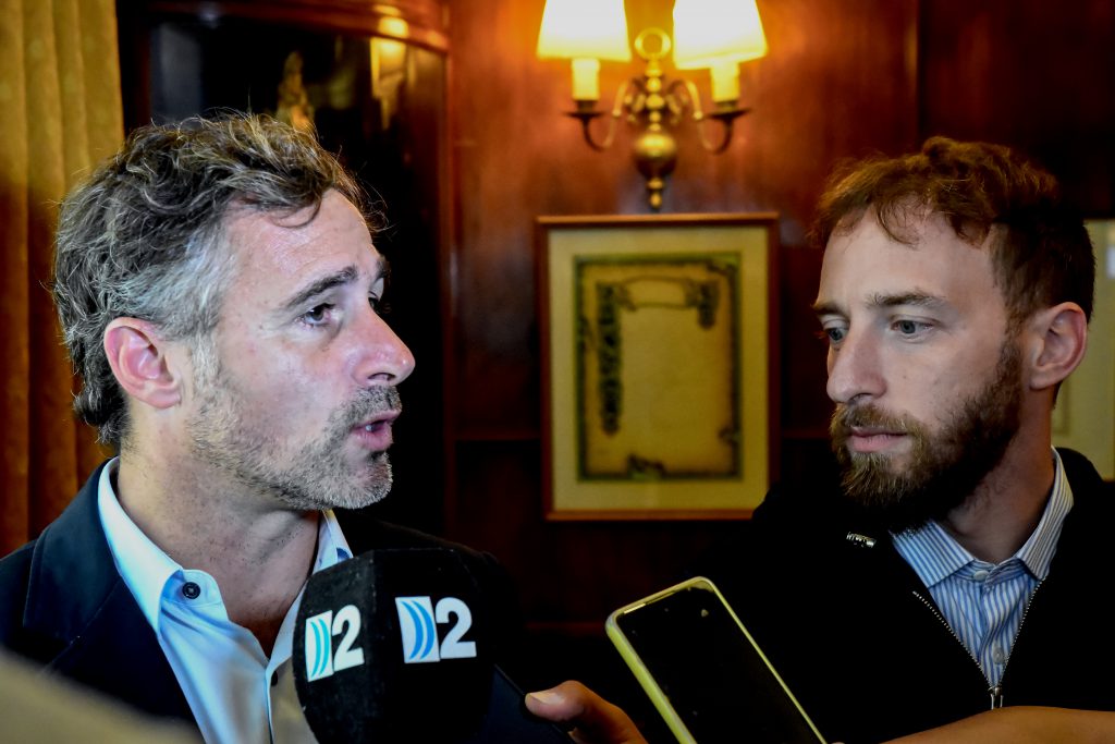 Los intendentes Federico Achával, de Pilar, y Federico Otermín, de Lomas de Zamora, durante su paso por el Congreso Provincial de Salud.