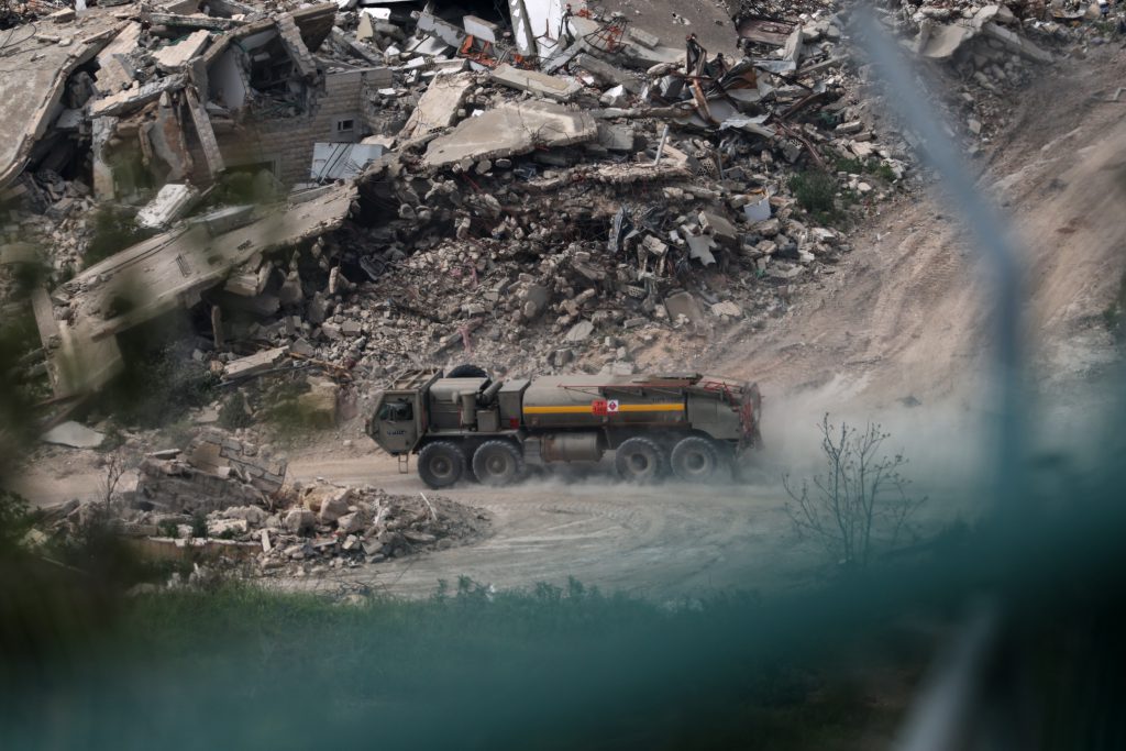 Vehículos militares israelíes maniobran en el lado libanés de la frontera, vistos desde la Alta Galilea, en el norte de Israel. Foto: EFE | EPA | Atef Safadi.