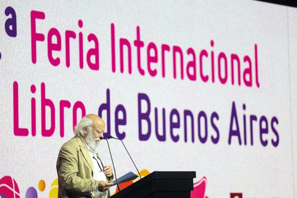 El escritor Juan Sasturain hizo una disertación en el acto de apertura de la 49 Feria Internacional del Libro de Buenos Aires, en el que recordó al escritor Roberto Fontanarrosa, a Héctor Oesterheld -el creador de ‘El Eternauta’- y destacó la importancia de los lectores.