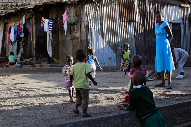Unos niños juegan fuera de sus casas hoy en Nairobi. Foto: EFE.