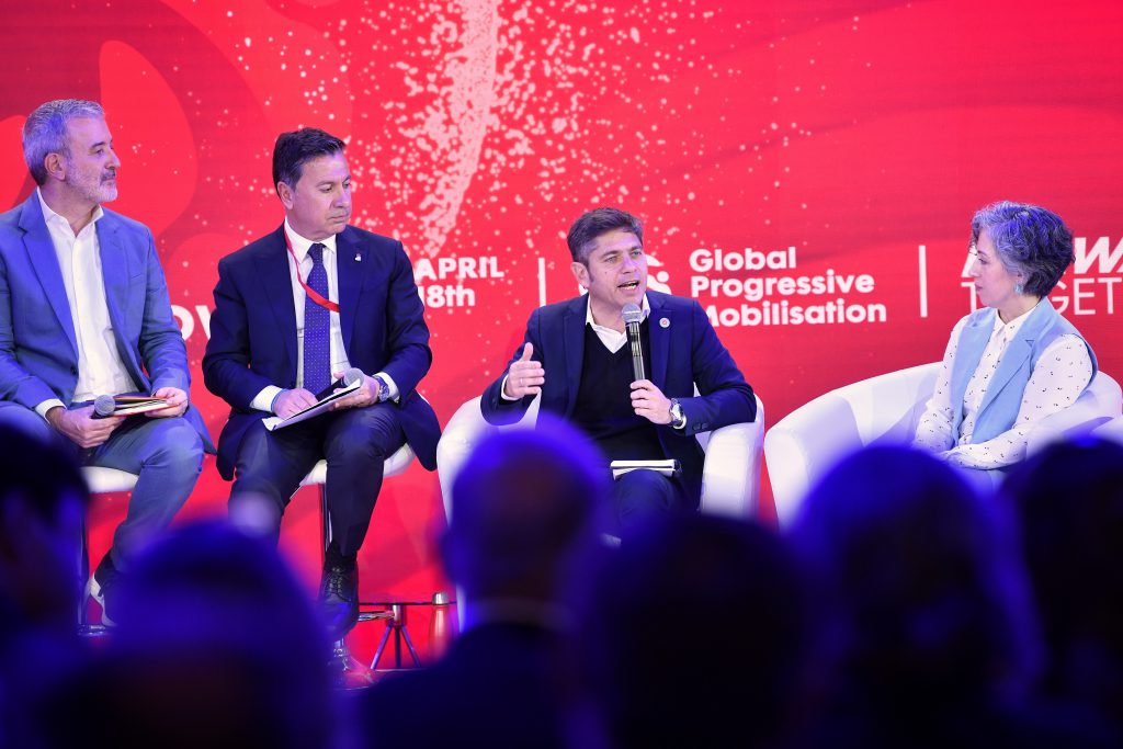 En el marco de su viaje oficial a España, el gobernador de la provincia de Buenos Aires, Axel Kicillof, participó hoy en Barcelona del panel “Respuesta progresista local: la primera línea de la democracia”, desarrollado en la última jornada de la Movilización Global Progresista. Además, mantuvo encuentros bilaterales con el presidente de Brasil, Luiz Inácio Lula da Silva, y otros líderes internacionales para fortalecer la cooperación conjunta.