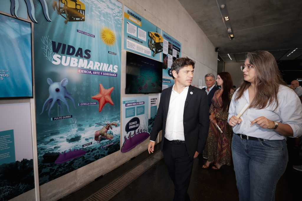 El gobernador de la provincia de Buenos Aires, Axel Kicillof, visitó hoy la muestra “Vidas Submarinas: ciencia, arte y soberanía” que se encuentra en exposición en el Museo de Arte Contemporáneo de Buenos Aires (MAR) de Mar del Plata, para poner en valor los logros de la histórica campaña realizada por especialistas del CONICET.